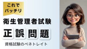 衛生管理者1 の〇×問題です。1問1問にわかりやすい解説がついています。4分ほどの動画です。繰り返し視聴していただき、3回目にしっかり答えましょう。間違いなく全問正解できます。